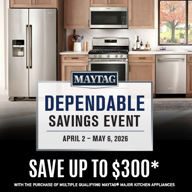 Save $300* with the purchase of 3+ qualifying Maytag kitchen appliances