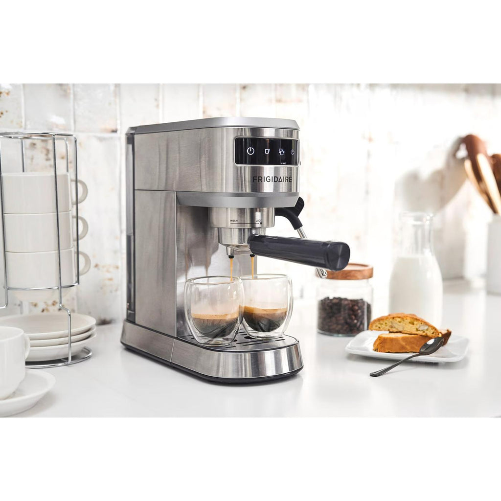 Upgrade your mornings and enjoy all your favorite specialty espresso creations without leaving the comfort of your home with the Frigidaire Steam Espresso Maker. Say goodbye to costly coffee runs and hello to faster, perfect-tasting espresso.