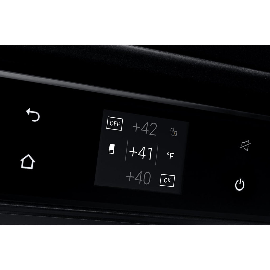 Exclusive Obsidian interior dazzles guests as food item colors "pop", even in matching crisper drawers and the freezer.