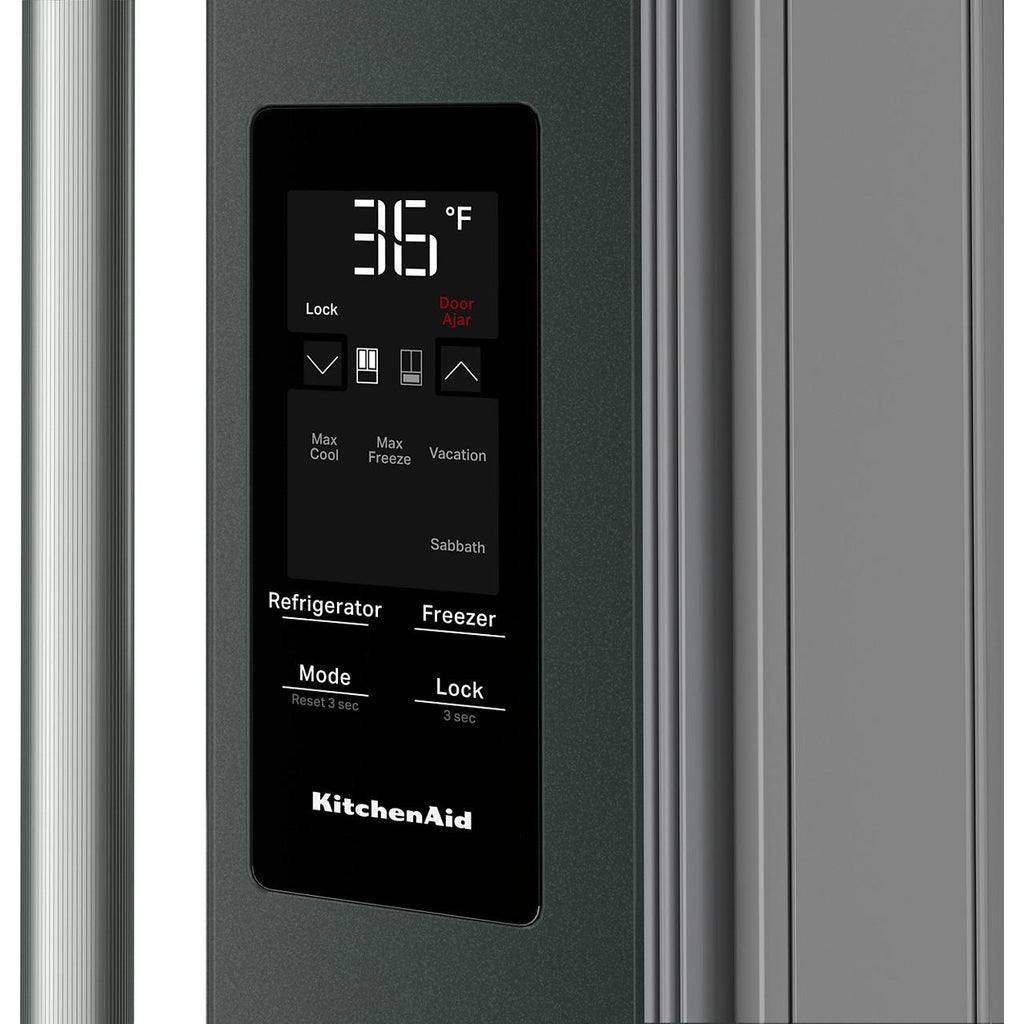 On door exterior put refrigerator functions at your fingertips for quick and easy adjustments to temperature, ice maker, and water filter. Smooth, seamless design is easy to clean.