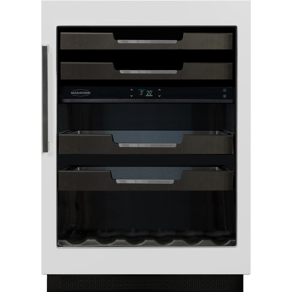 Slow-close articulating hinge for flush installation & field reversible door swing for added flexibility.