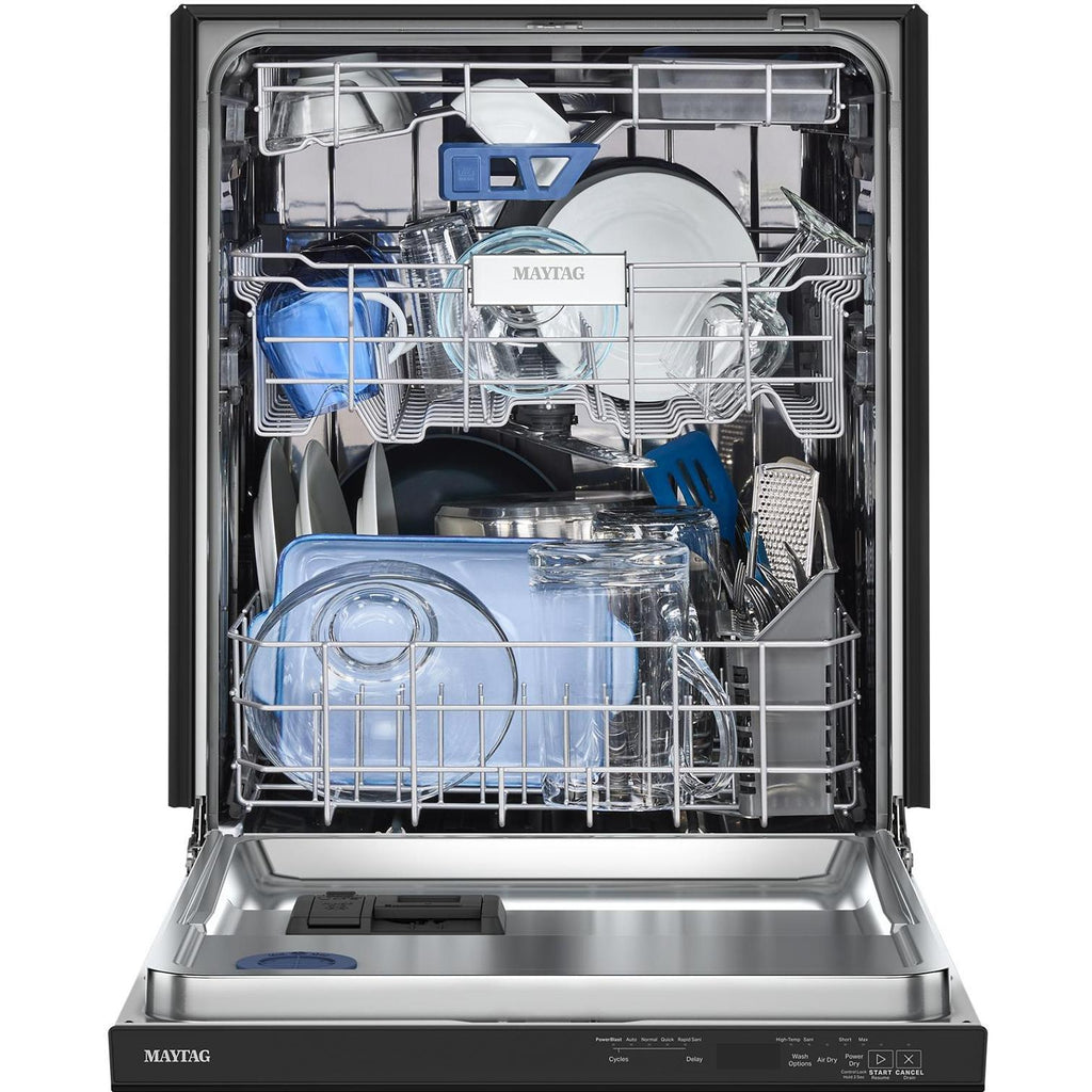 Skip soaking, scrubbing and prerinsing with Maytag engineering that puts an end to pre-work. Industry-exclusive Dual Power filtration combines microfiltration and a 4-blade stainless steel chopper to filter out then disintegrate any food in its path.