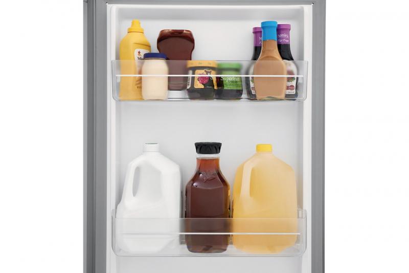 Clear refrigerator door bins offer additional storage and organization, with gallon door bin that provides convenient storage for larger containers.