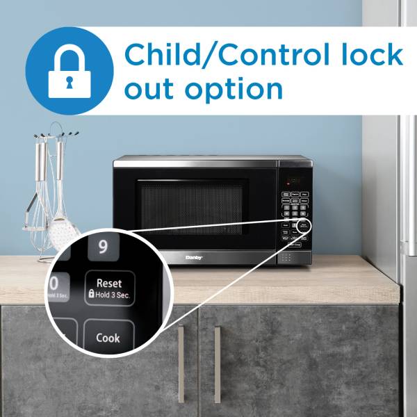 Short on counter space? Meet Danby’s ultimate space-saving 0.7 cu. ft. under the cupboard stainless-steel microwave. This microwave can be placed on the countertop or anywhere under a cabinet, high or low. Enjoy cleaner counter space, improved functionality, and a more modern aesthetic in your apartment, condo, or RV. With 700 Watts of cooking power, this model comes with 6 convenient auto cook options: baked potato, popcorn, pizza, beverage, frozen dinner, and reheat. The one-touch auto defrost option simplifies your cooking needs, and the express cook buttons provide 1-6 minutes of cooking time. The child/control lock-out option guarantees a safe environment for your child! Silence the cooking alert beep with the sound on/off function.