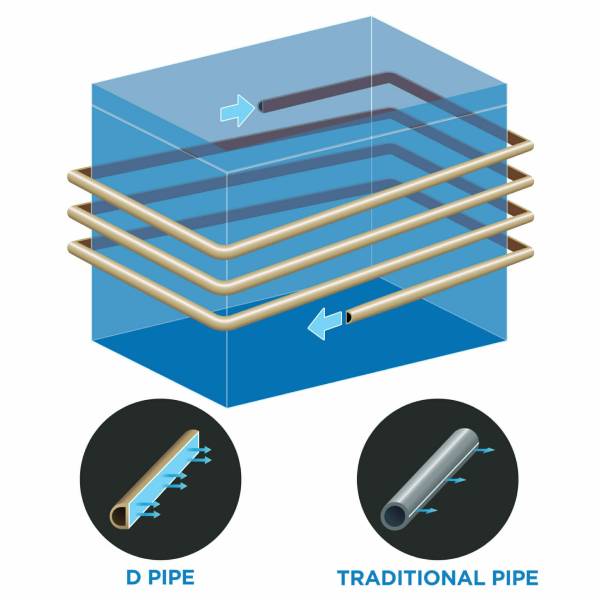 New D Pipe design allows for more pipe contact surface allowing better all around cooling within the unit than traditional rounded pipes.