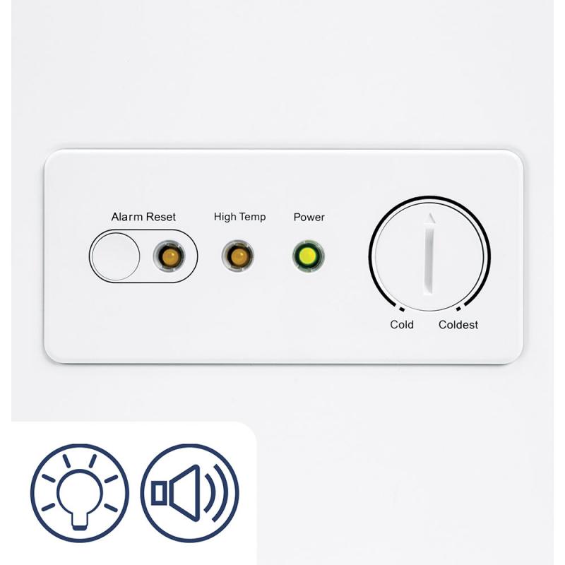 The easy-to-hear alarm alerts you if the temperature rises.