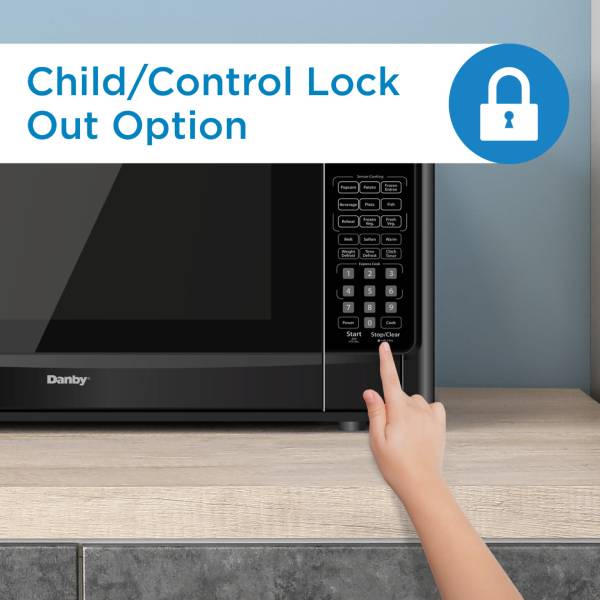 Cook your favorite meals quickly with Danby’s 1.4 cu. ft. microwave with sensor cooking controls. This stylish model can accommodate large dishes and plates and is available in black, white, or stainless steel. Danby microwaves are well suited for dorm rooms, offices, cottages, or s. With 1100 watts of power, this model comes with nine sensor cooking control options: popcorn, potato, frozen entrée, beverage, pizza, fish, reheat, frozen vegetable, and fresh vegetable. It’s easy to reheat lunch or dinner with the sensor cooking function that turns off the microwave at precisely the point when cooking or reheating is done. The one-touch auto defrost option simplifies your cooking needs, and the express cook buttons provide 1-6 minutes of cooking time. The child/control lock-out option guarantees a safe environment for your child!