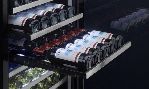 Storing a robust 129 bottles of wine in two different temperature controlled compartments. Set either compartment between 41F – 64F (5C – 18C) depending on your collection Our clean modern display is set at a 27 degree angle to make viewing easier.