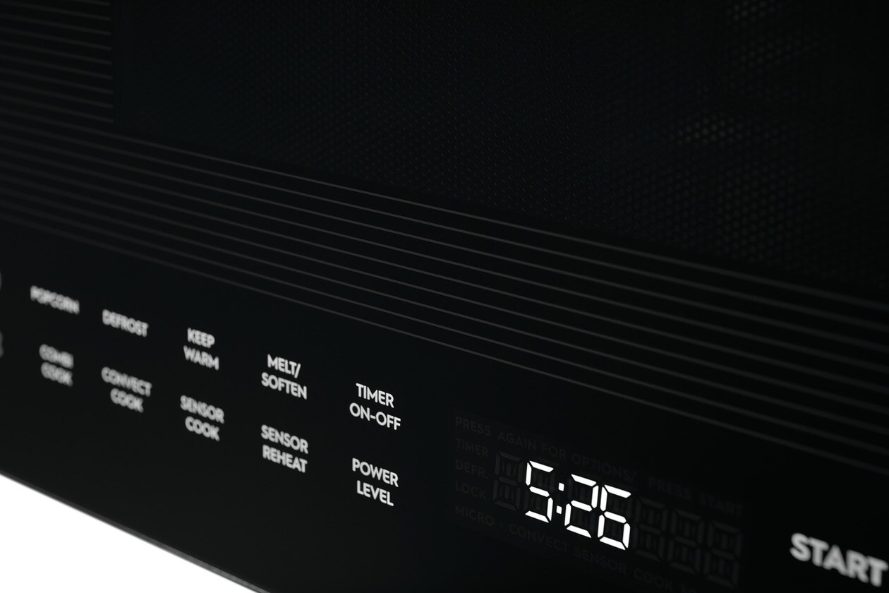 This microwave's full glass door features effortless automatic open and space saving zero-clearance hinge