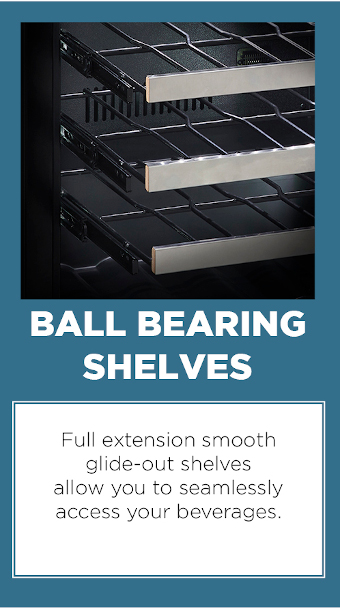 5 Full extension ball bearing shelves + 3 pull out tempered glass shelves