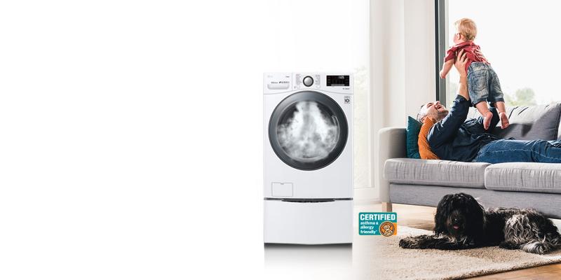 Asthma Canada certified LG washers with the Allergiene™ Cycle remove over 95%* of pet dander and dust.