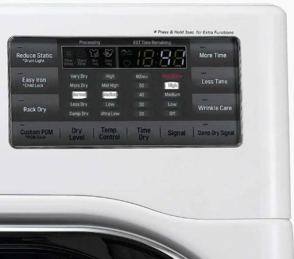 More Time, Less Time, Damp Dry Signal, Wrinkle Care, Control Lock, Wi-Fi, Energy Saver, Remote Start, Signal