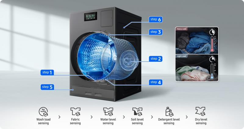 AI Laundry Combo™ washes and dries clothes in one machine with no load transfer.