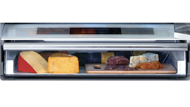 An ingenious addition to the modern refrigerator, this full-width shallow drawer is ideal for storing cold cuts, cheeses, and small packages that can easily get pushed to the back of the shelves and out of sight. It is also a handy solution for storing drink boxes and snacks where the kids can help themselves.