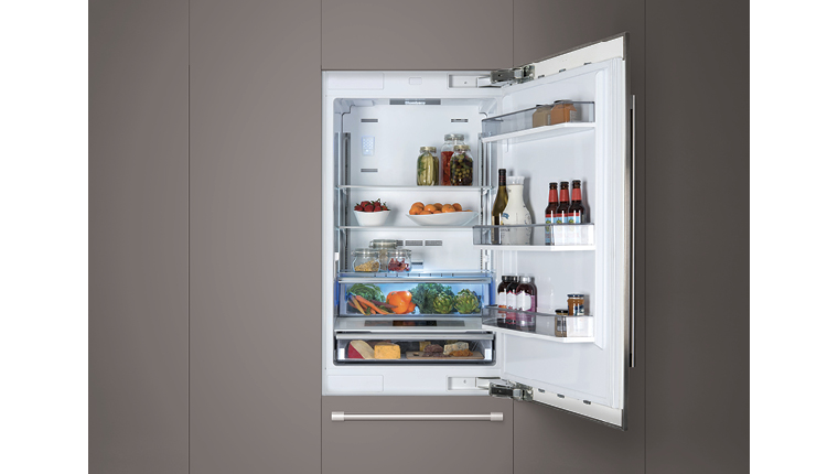 For a truly custom look, Blomberg’s specially engineered hinge allows the refrigerator door to open a full 90 degrees and stay exactly flush with the opening.