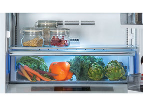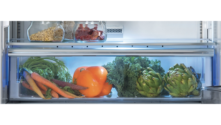 Exclusive Blomberg Blue Light Technology represents a breakthrough in keeping fruits and vegetables fresh and juicy long after they’re picked. Continuous blue light rays illuminate the crisper and allow the natural process of photosynthesis to continue, prolonging storage life and preserving natural flavors, colors, textures, and nutrients.