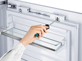 Blomberg believes refrigerators should be adaptable as well as beautiful. Our expansive glass shelves are cantilevered at the back so you can use every inch of space for storage. Plus, with a simple motion they can be manually adjusted up or down 3" to accommodate anything from the holiday turkey to a towering layer cake.
