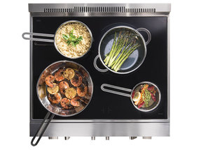 Blomberg electric ranges with sleek solid-surface cooktops offer more than a beautiful appearance and the benefit of effortless cleanup. They feature the versatile advantage of allowing you to create an extra-large, 12" cooking zone for fast, efficient cooking in oversize pots and pans of any shape, as well as with stovetop griddles.