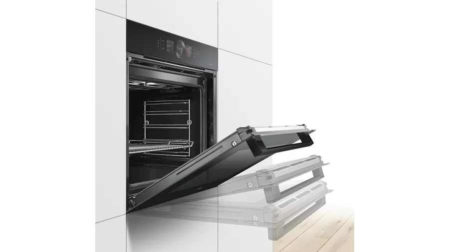 Oven doors are now more convenient than ever: A special damping mechanism prevents oven doors from slamming shut. As you gently push the door shut, it stops just before closing and then shuts itself gently and quietly, thus guaranteeing a long life for both your oven and the oven door.
