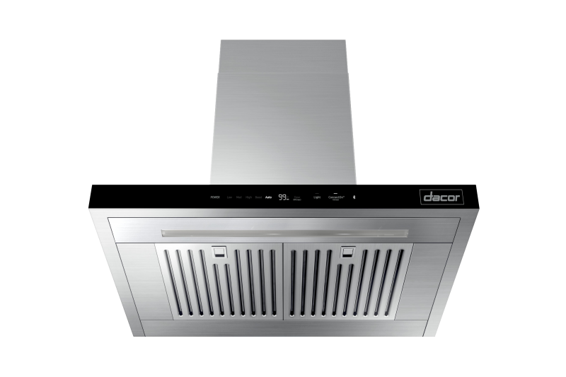 The 30" Chimney Wall Hood is designed to make your life easier by seamlessly pairing to your compatible Dacor cooking product. Bluetooth automatically starts ventilation when you start cooking and adjusts intensity when necessary to ensure smoke and odor are removed from the air with minimal noise. SmartThings connectivity allows you to control your ventilation from your mobile device. Powerful yet quiet, internal blowers draw air into the ventilation system to dissipate cooking odors, even when all burners are lit. Designed with elegant lines, sophisticated glass touch control, and LED strip lighting that will illuminate your cooking area in an elegant glow.