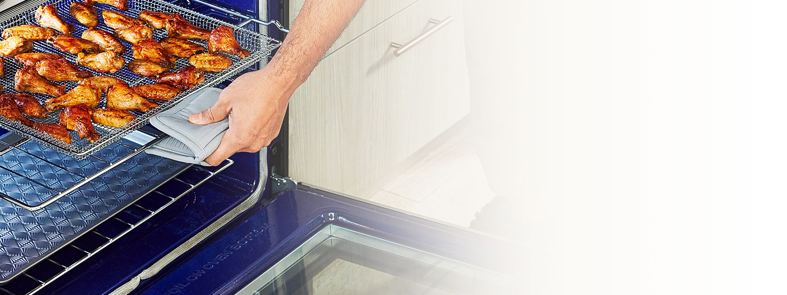 Air fry favorites like wings, fries and more while saving counter space. High temperatures and the convection fan work together to deliver the flavor and crunch you crave with little to no oil*