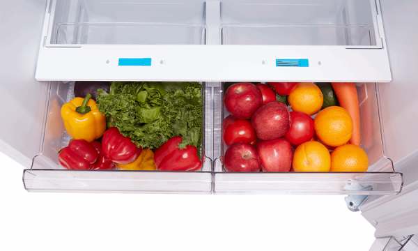 Dual Crisper drawers hold in moisture to keep fruits and vegetables fresh for longer