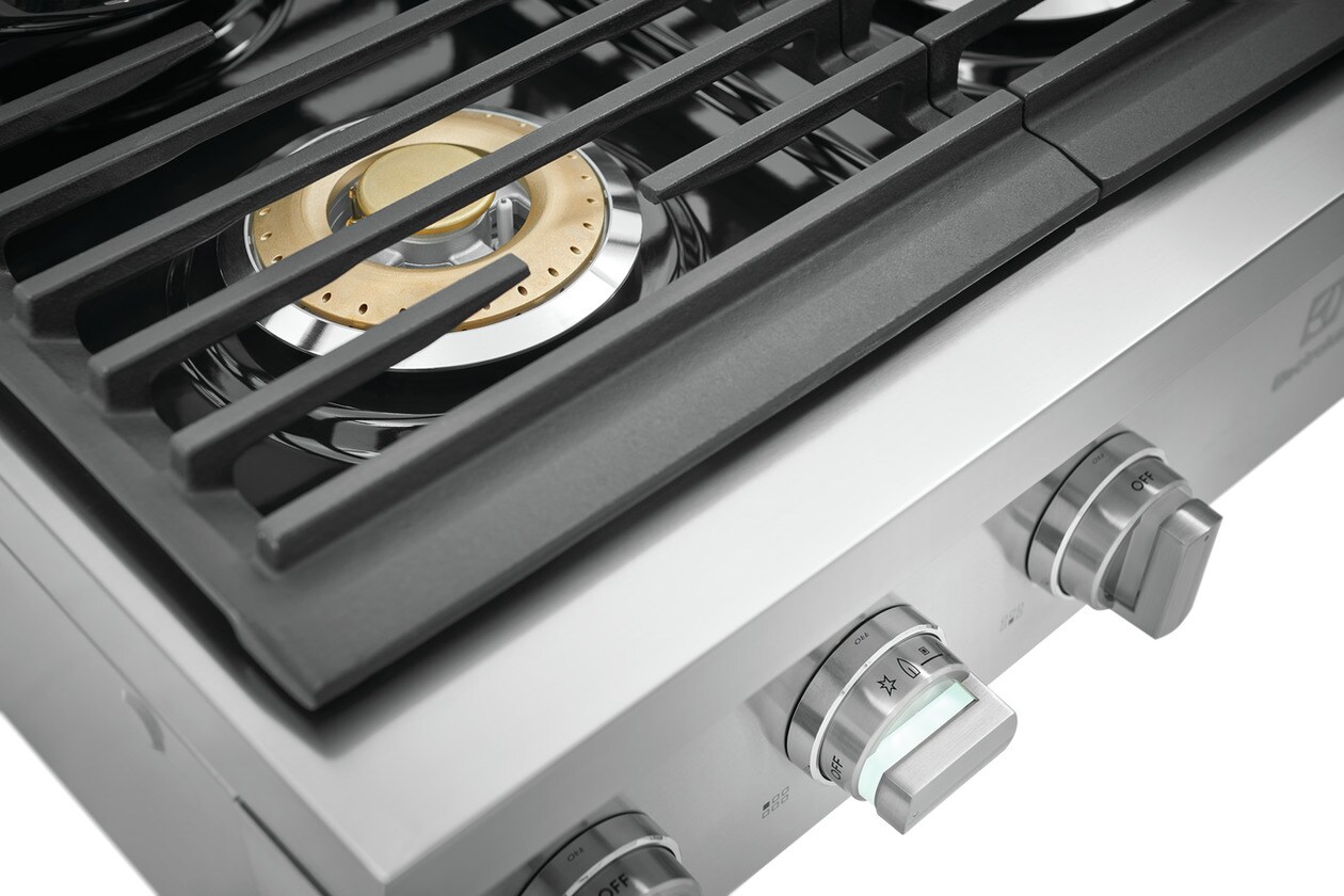 Explore your culinary creativity with the Electrolux Gas Rangetop with two flexible brass power burners that allow you to achieve accurate and efficient temperature control from a rapid boil to a bare simmer and everything in between.