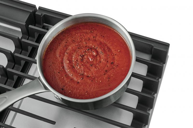 Moving heavy pots and pans across the cooktop is easier with continuous edge-to-edge grates.