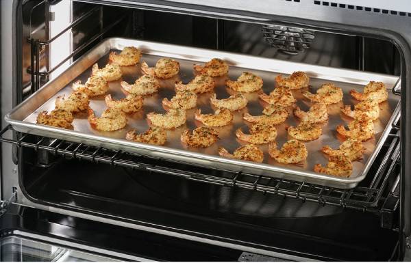 A large capacity oven fits a full-size catering pan with three racks and large 8-pass bake and broil elements.