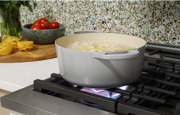 The cooktop on this commercial style range features an entire arsenal of burners that give you the right amount of heat and control to perfectly cook anything from delicate sauces to expertly seared meats.
