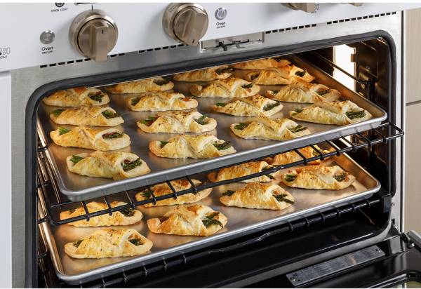 A large capacity oven fits a full-size catering pan with three racks and large 8-pass bake and broil elements.