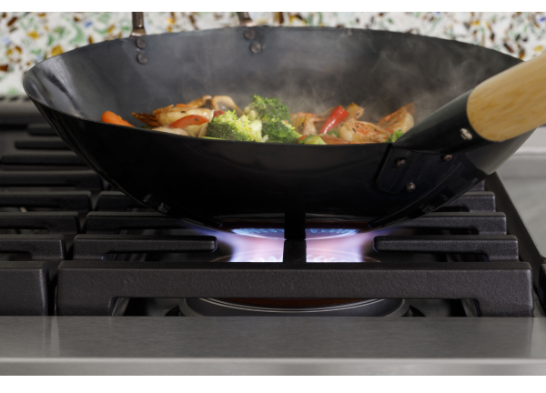 The cooktop on this commercial style range features an entire arsenal of burners that give you the right amount of heat and control to perfectly cook anything from delicate sauces to expertly seared meats.