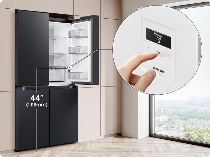 * The refrigerator’s internal display is located lower than 44 inches (1,118mm) from the bottom, and the freezer is located lower than 36 inches (914mm) from the bottom which is lower than the height of a general kitchen counter.