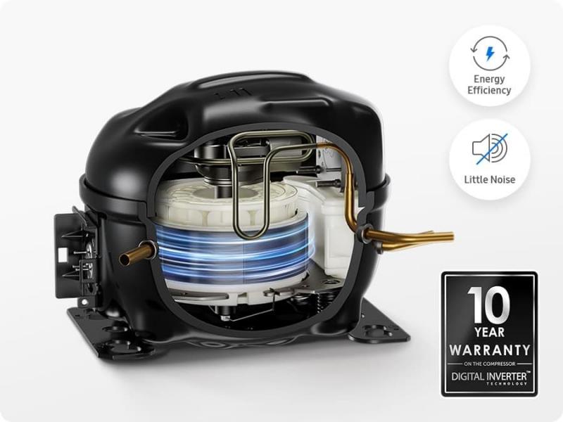 * Based on internal testing compared to conventional S3 Samsung compressors. ** 10 year warranty is limited to the compressor (available globally without North America).