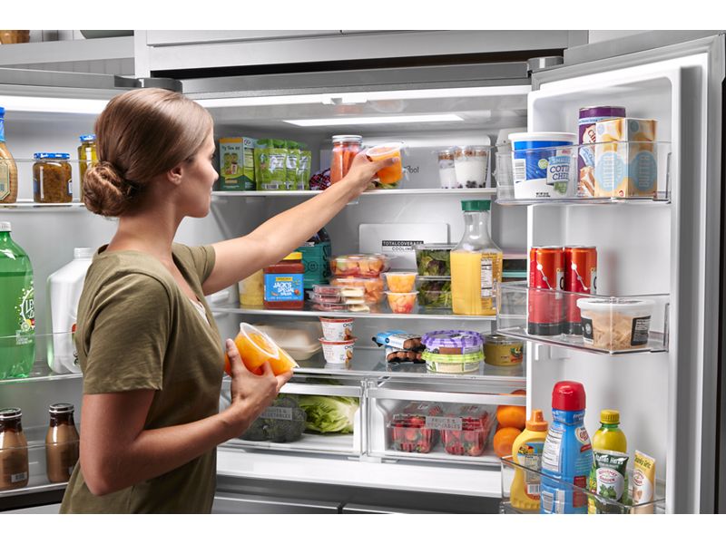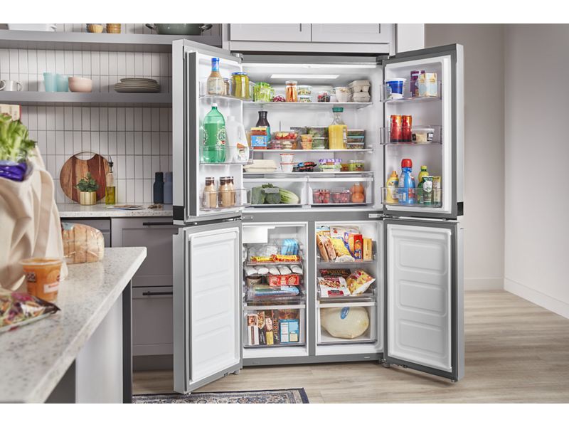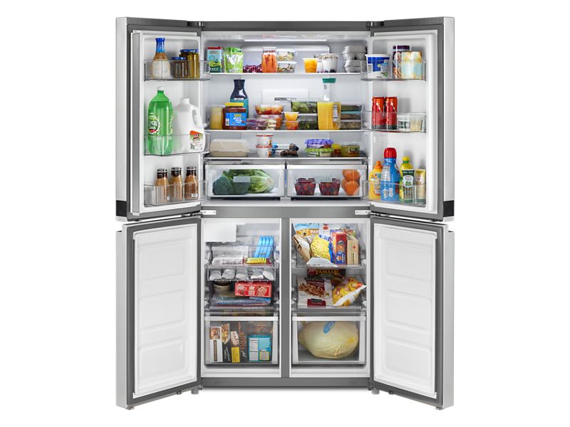 This 4 door refrigerator is more than sleek. Four compartments help keep fresh and frozen groceries organized and accessible.