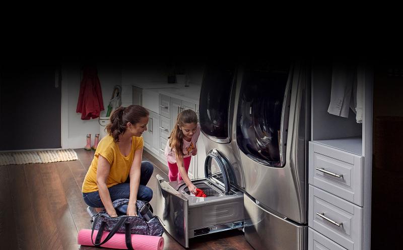 Wash small loads that can't wait or two loads at once with the LG Pedestal Washer.