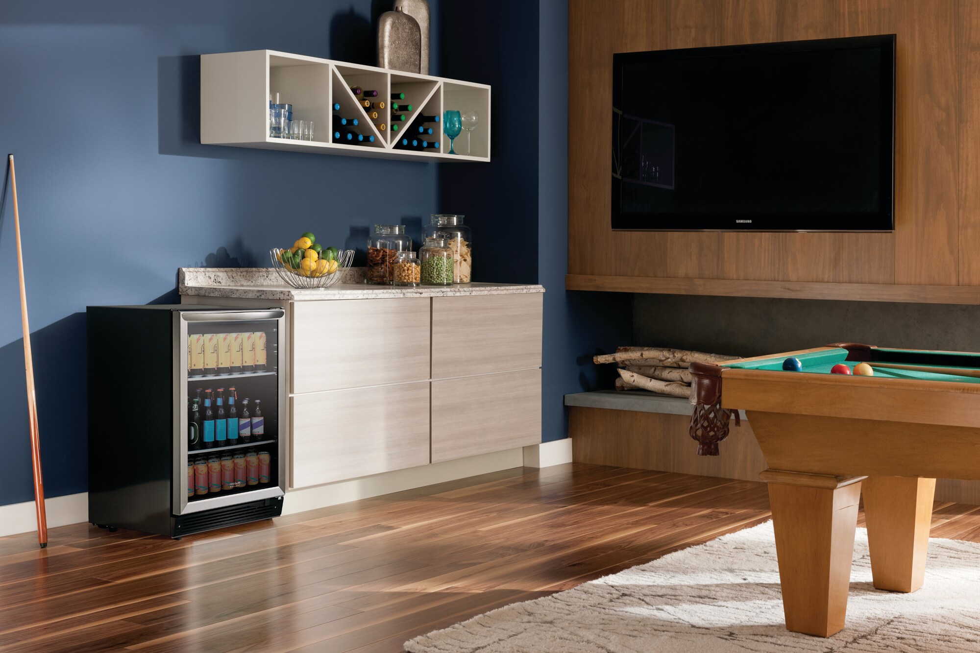 Keep your favorite refreshments at just the right temperature without sacrificing refrigerator space with this 5.3 cubic foot built-in beverage center that has an easy fit capacity of 165 twelve-ounce cans and a maximum fit capacity of up to 195 twelve-ounce cans.