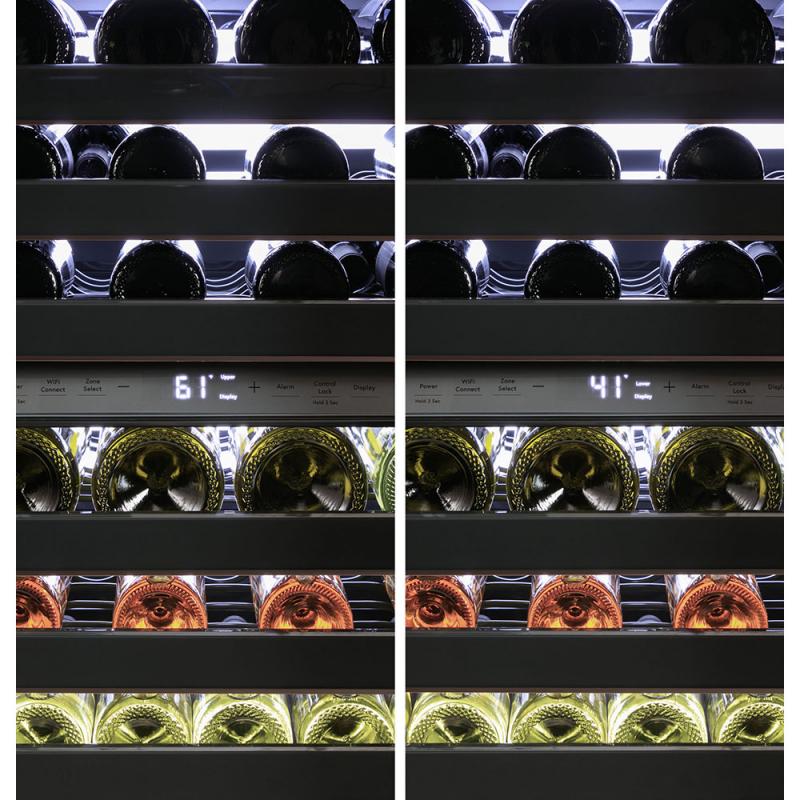 This wine center has an LED light wall that spans the back panel, illuminating the interior so every item is easy to find