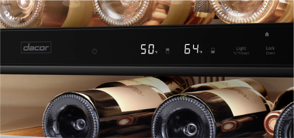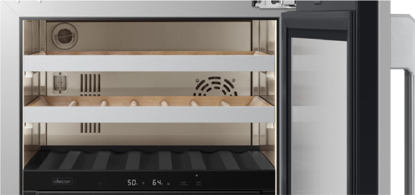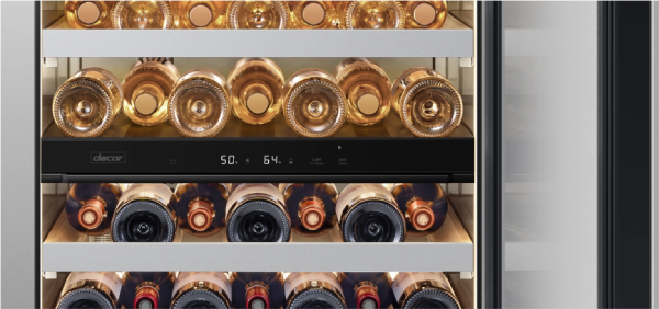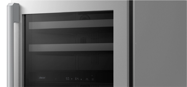 Ensure your wine is perfectly preserved and beautifully showcased with the Dacor Undercounter Wine Cellar. Enjoy a seamless kitchen design with custom design-ready panels, a versatile Field-Reversible Flush-Capable Hinge and flexible installation. Store up to 41 bottles and beautifully showcase your collection with 3D Lighting and a stunning SteelCool™ interior. Optimally preserve your selection with Dual Temperature Zones and customizable settings within an intuitive Touch Control Panel. An innovative GlideRack™ system eliminates vibration to safeguard taste, adding the perfect finishing touch.