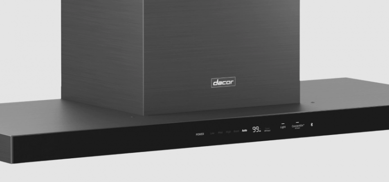 The Island Hood is designed with elegant lines, LED lighting, and a sophisticated glass touch control that seamlessly connects and pairs with your compatible Dacor cooking product.
