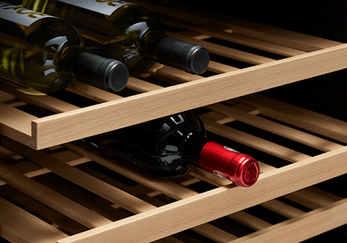 Designed to control light exposure, air humidity and storage temperature to ensure the quality of your wine. Shelf components are constructed with beechwood, which naturally absorbs humidity and lowers the chance of label abrasion typically associated with metal wire racks. EasyGlide™ shelves effortlessly slide forward—there’s no need to reach inside to access your bottles.
