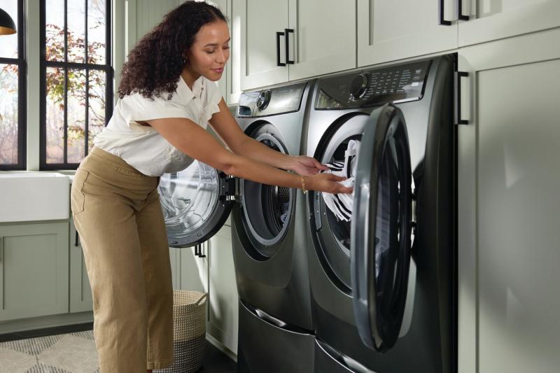 The Electrolux front load gas dryer with LuxCare Dry uses a moisture sensor to prevent over or under-drying. The Wear It Again cycle refreshes fabrics by using steam and tumble to remove pet hair, reduce odors, and reduce wrinkles in just 15 minutes. And the Luxury-Quiet Sound System is so quiet you can run it whenever you want without disrupting your household.