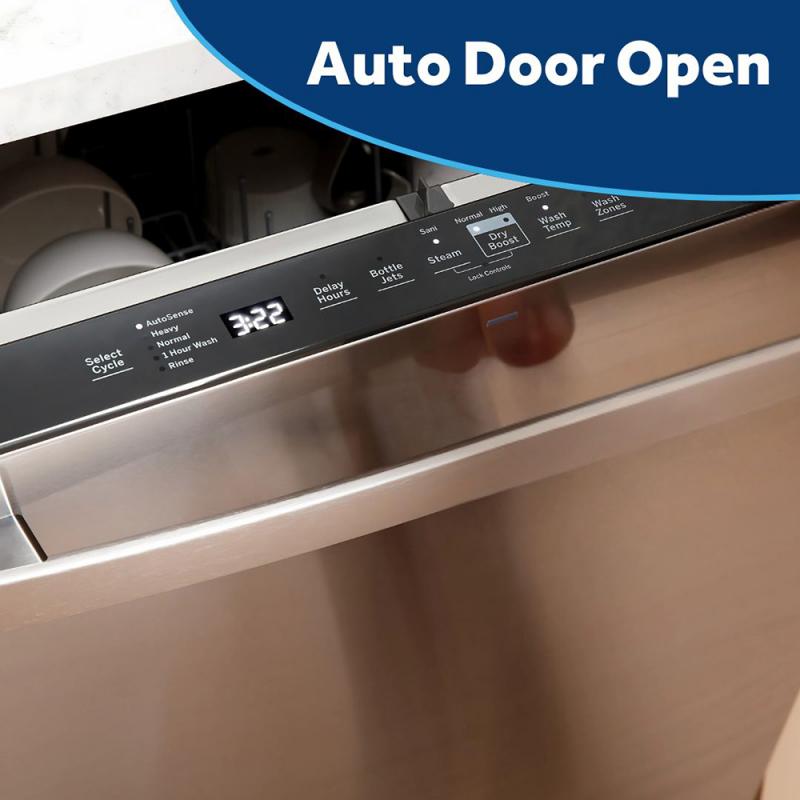 After the end of the wash cycle, the Auto Door Open Dry System automatically releases the door open to allow for steam from the dishwasher.