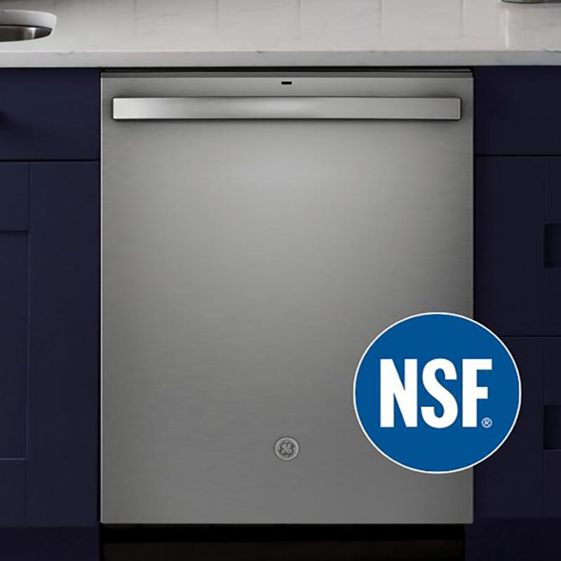 High-temperature rinse sanitizes and reduces by 99.999% the bacteria found on dishes