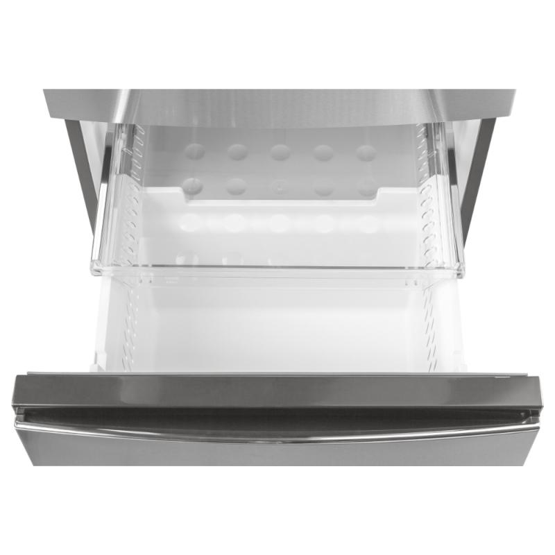 Dual layered pull-out freezer drawer allows for easy access and organization of all your frozen foods.