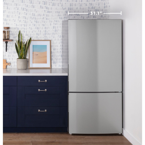 A width of 31.1" makes this refrigerator fit for small spaces while 17.4 cu. ft. of capacity gives you ample storage