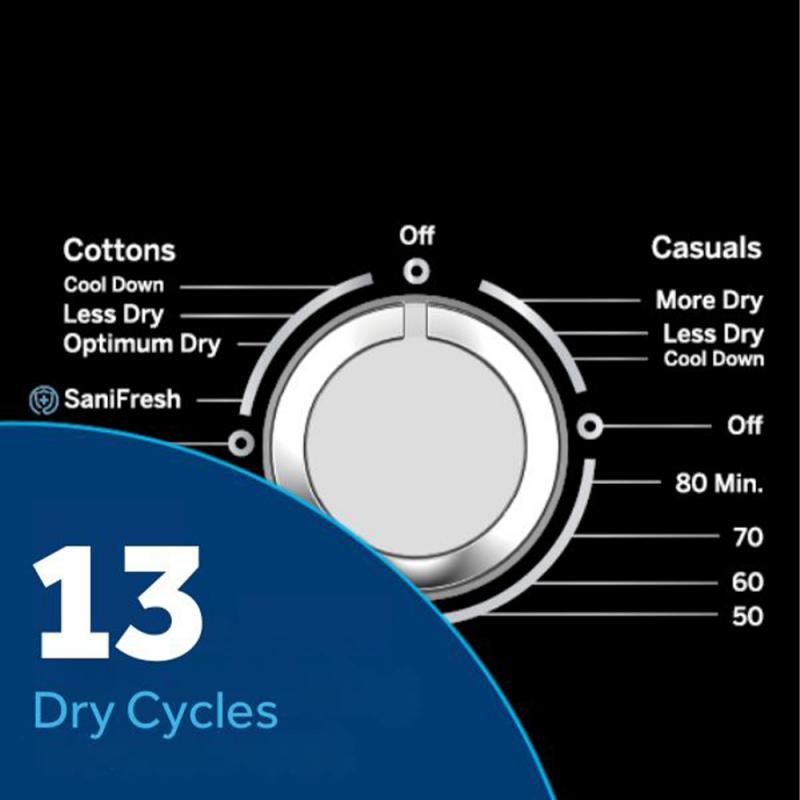 This dryer with moisture sensor continually monitors temperature and moisture to determine the appropriate drying time to protect your laundry and prevent over-drying. Play Video