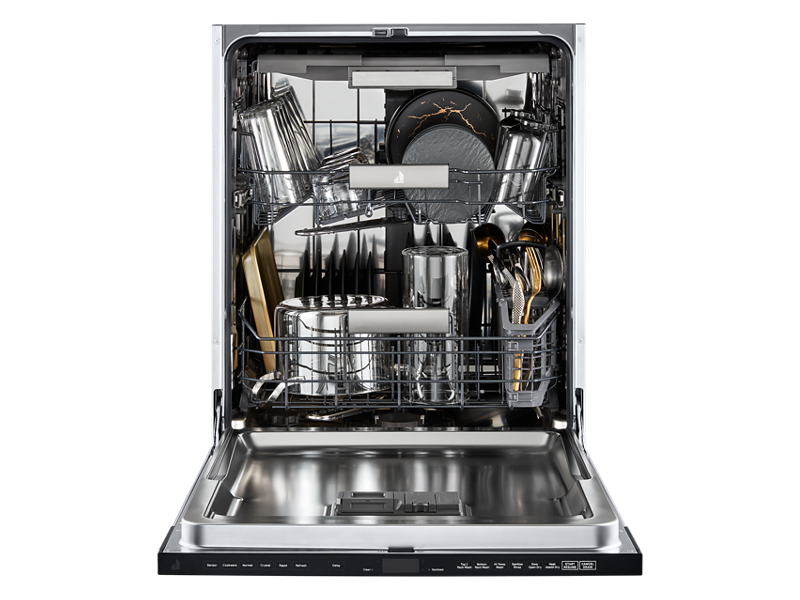 Two pressure-optimizing stainless steel wash arms deliver powerful cleaning spray to cookware and dishes, cleaning them effectively.