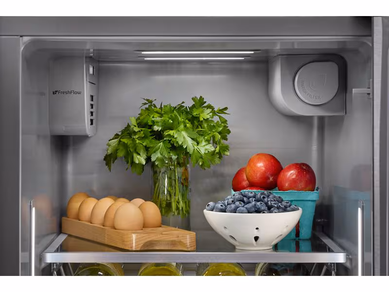 helps keep ingredients fresh and flavorful. This single evaporator system uses sensors to continually monitor temperature levels in both the refrigerator and freezer and adapts the flow of cold air between them to maintain optimal temperatures throughout.