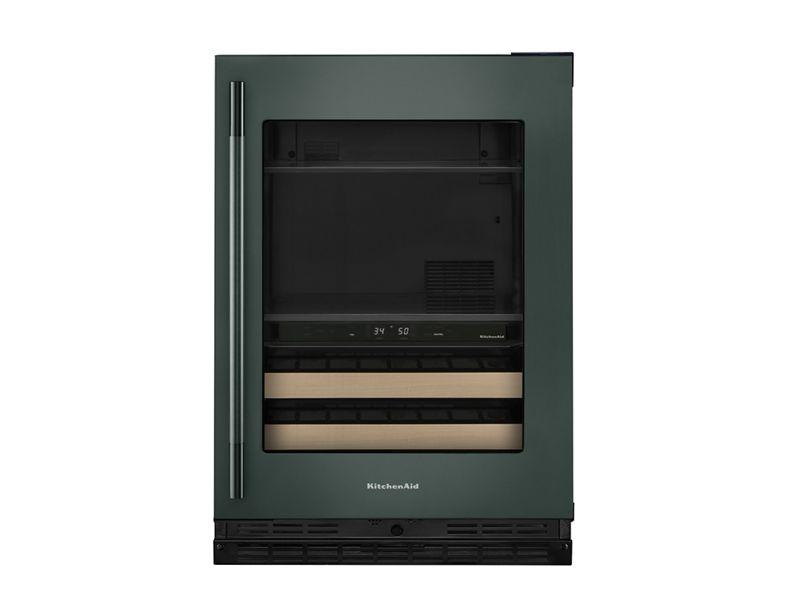 This 24" Undercounter Beverage Center with Full-Extension Wood-Front Racks stores 14 wine bottles below with room for drinks and food on the full-width shelves above. Two Temperature-Controlled Zones adjust for what you’re storing\, and a Temperature Monitoring System with sensor alert adds peace of mind. Fully Flush Installation with Hidden Hinges provides a built-in look within cabinetry.